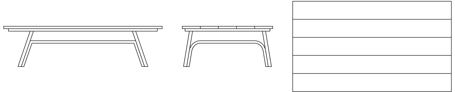 Struttura principale in tubolare metallico a sezione circolare curvato e saldato; traversi strutturali in tubolare metallico a sezione ellittica e pianale di sostegno degli imbottiti in doghe...
